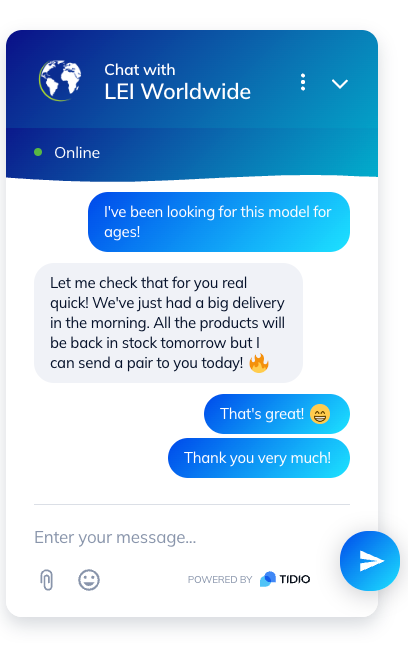 Continuous Improvement Based on Your Feedback At LEI Worldwide, we're committed to delivering an exceptional support experience. Your feedback is invaluable to us, and we're constantly striving to improve based on your suggestions. After each live chat session, you'll have the opportunity to rate your experience and provide feedback, helping us ensure that we're meeting your needs effectively.